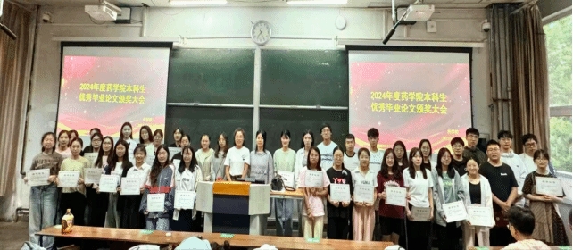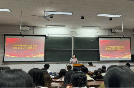 活动开始,药学院党总支副书记李文媛老师致辞,首先李文媛老师先代表学校对获得了2024年“毕业生优秀论文奖”的同学表示了热烈的祝贺和衷心的感谢。接着,她肯定了这些优秀毕业生们四年不懈地努力,也提出他们的成功更离不开悉心指导的老师们,他们严谨的治学态度和精湛的学术水平,为同学们在学术研究方面树立了榜样。
