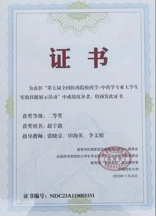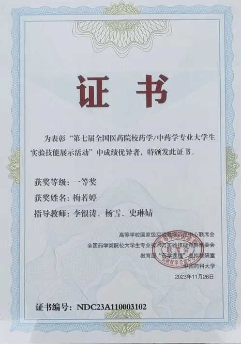 我校学生在“第七届全国医药院校药学/ 中药学专业大学生实验技能展示活动”中取得优异成绩