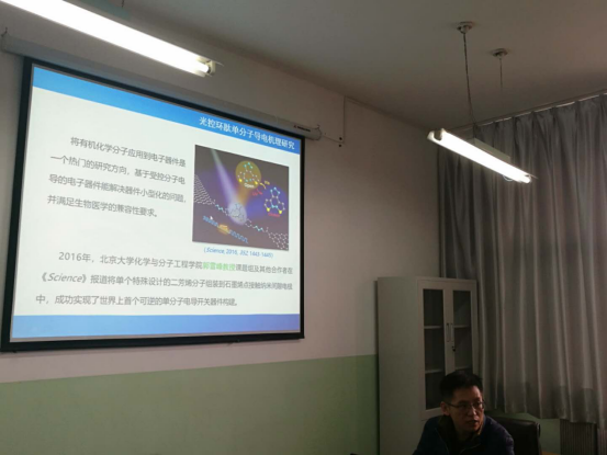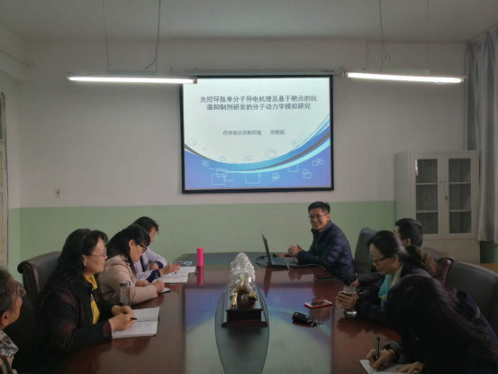 3月27日上午,贺艳斌博士在药学系会议室进行了题为《光控环肽单分子导电机理及基于靶点的抗菌抑制剂研发的分子动力学模拟研究》的访学汇报。报告从单分子模拟的角度阐述了分子的构型变化、氨基酸残基的差异如何影响单分子电子器件导电性;此外,针对超级金黄色葡萄球菌的生物素蛋白连接酶这一药物靶点,介绍了药物设计的相关研究。贺艳斌博士在报告结束后和与会教师进行了热烈的学术交流。